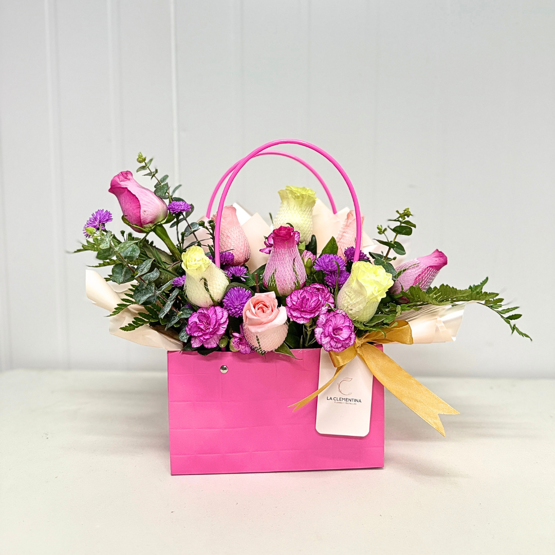 Carteras florales: el regalo perfecto con estilo y encanto. Incluye rosas, follajes finos y flores de temporada en un diseño elegante para cualquier ocasión.
